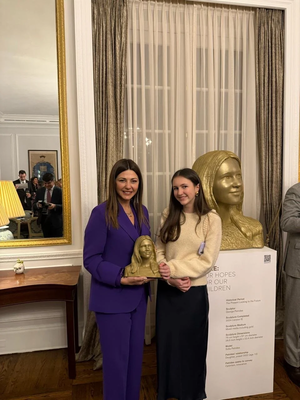 In honor of Greece’s participation in the currently-in-session Commission on the Status of Women at the United Nations, Sculptor George Petrides presented the sculpture Kore II to Ambassador Evagelos Sekeris, the Permanent Representative of Greece to the UN, in the presence of Minister Sofia Zacharaki. The portrait of a girl was created by the Greek-born "globally renowned sculptor" (Forbes 2022), who is known for the world-traveling exhibition Hellenic Heads as well as his 20 public sculptures in Asia, Europe and the USA.